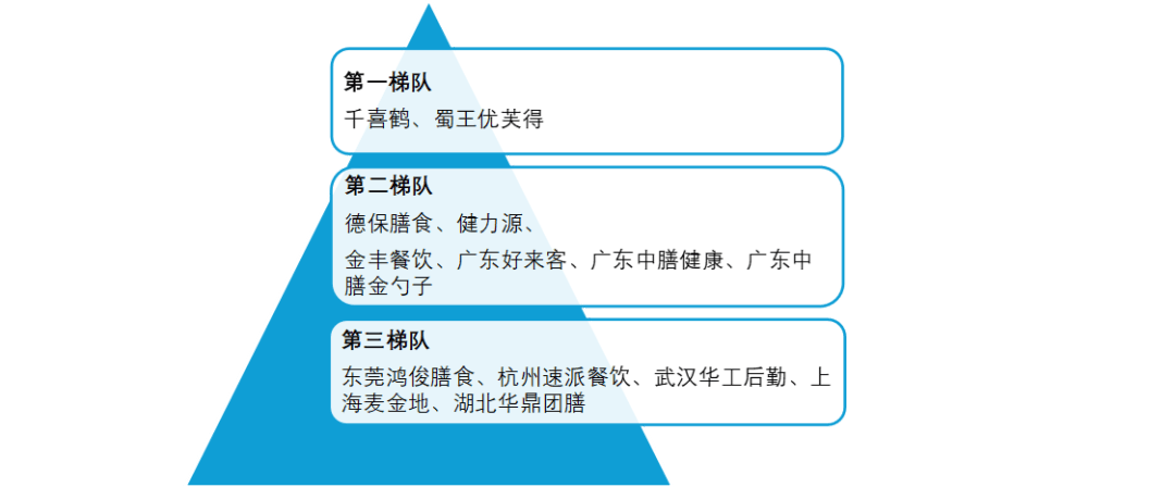 企业规模来看,蜀王优芙得餐饮办事无限公司等;第二梯队公司为深圳市德保炊事办理无限公司,健力源餐饮办理无限公司,金丰餐饮无限公司,广东好来客集团无限公司,广东中膳健康财产科技无限公司和广东中膳金勺子食物集团无限公司等;第三梯队有东莞市鸿骏炊事办理无限公司,杭州速派餐饮办理集团无限公司,武汉华工后勤办理无限公司,上海麦金地集团股份无限公司和湖北华鼎团膳办理股份无限公司等。