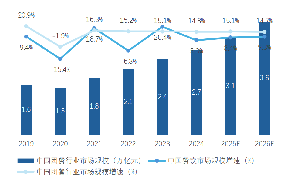 2024年团餐市场规模约2。7万亿元,估计2026年团餐市场规模将超3。5万亿元。团餐行业客群及需求规模相对不变,市场韧性强于餐饮市场全体表示,连结稳态增加。